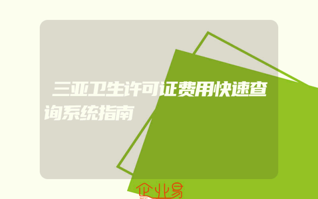 - 三亚卫生许可证费用快速查询系统指南一、三亚卫生许可证的重要性在三亚从事食品生产、餐饮、医疗等行业的单位和个人,必须依法取得卫生许可证。卫生许可证是保障公众健康的重要凭证,也是企业合法经营的必备资质。了解卫生许可证的办理流程和费用,对