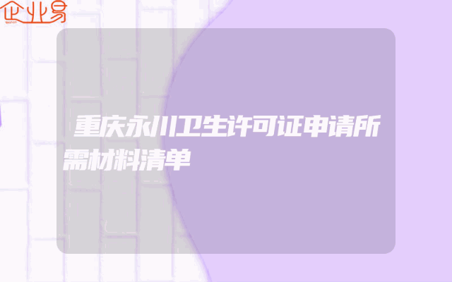 - 重庆永川卫生许可证申请所需材料清单引言随着经济的快速发展,人们对生活环境、健康安全的需求不断提升,企业的生产经营活动中卫生许可证的办理显得愈发重要。在重庆永川区,无论是餐饮企业还是其他涉及卫生安全的服务行业,都需要办理卫生许可证,以