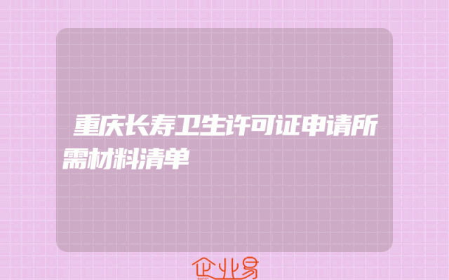 - 重庆长寿卫生许可证申请所需材料清单引言在重庆市长寿区开展食品、公共场所等行业的经营活动,申请卫生许可证是必不可少的一环。本文旨在详细介绍在重庆长寿申请卫生许可证过程中所需的材料清单,帮助申请者了解并准备相应的申请资料。一、企业基本情