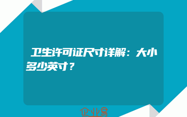 - 卫生许可证尺寸详解:大小多少英寸?一、卫生许可证的重要性卫生许可证是证明企业符合卫生法规要求的法定证件,对于保障公共卫生和人民健康具有重要意义。了解卫生许可证的尺寸,有助于我们在办理、保管和使用过程中遵循相关规定。二、卫生许可证的标准尺寸根