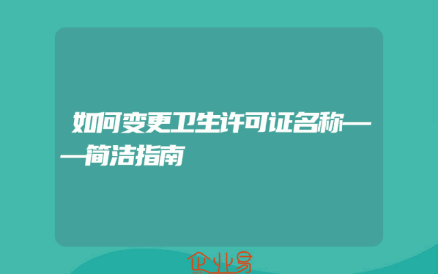 - 如何变更卫生许可证名称——简洁指南了解变更卫生许可证名称的重要性在企业的运营过程中,随着业务的发展和品牌形象的塑造,有时我们需要对卫生许可证名称进行变更。这不仅关乎企业的声誉,也涉及到法律合规问题。因此,了解如何快速且合规地完成卫生许可证名