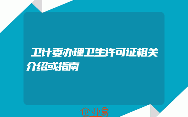 - 卫计委办理卫生许可证相关介绍或指南