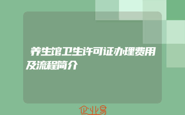 - 养生馆卫生许可证办理费用及流程简介