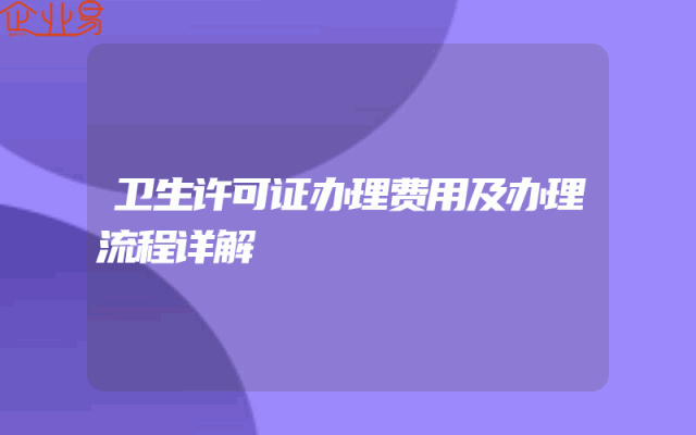 - 卫生许可证办理费用及办理流程详解