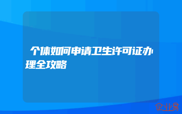 - 个体如何申请卫生许可证办理全攻略