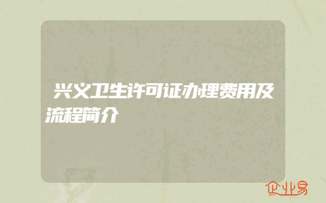 - 兴义卫生许可证办理费用及流程简介