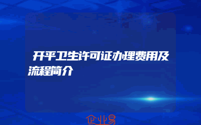 - 开平卫生许可证办理费用及流程简介