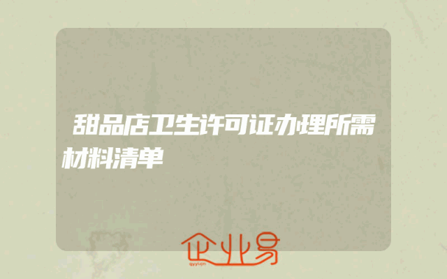 - 甜品店卫生许可证办理所需材料清单详解一、背景介绍随着食品行业的快速发展,甜品店作为食品行业的一个重要分支,为保障消费者的饮食安全和健康,必须严格遵守卫生标准和规定。开设甜品店,除了必要的营业执照外,卫生许可证也是必不可少的。本文将详细介绍办