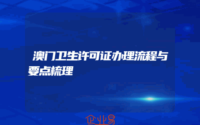 - 澳门卫生许可证办理流程与要点梳理一、引言澳门作为一个国际化的城市,对于各类企业的运营有着严格的规范和标准。在澳门开展业务,必须符合当地的卫生标准和法规要求,其中卫生许可证的办理是重要的一环。本文将详细介绍澳门卫生许可证的办理流程与要点,帮助