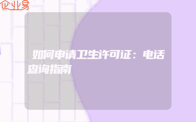 - 如何申请卫生许可证:电话查询指南一、了解卫生许可证申请流程卫生许可证是企业或个人从事食品、公共场所等行业的必备证照,办理流程和要求因地区而异。在开始申请之前,申请人需要了解所在地的卫生许可证申请流程,包括所需的材料、办理时限、办理地点等。可