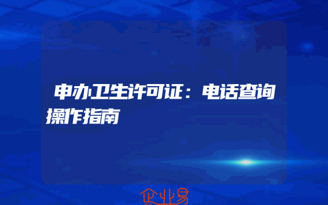 - 申办卫生许可证:电话查询操作指南