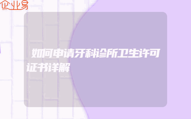 - 如何申请牙科诊所卫生许可证书详解了解卫生许可证书的重要性在牙科诊所的运营过程中,卫生许可证书是开展诊疗服务的基础和前提。它不仅关系到诊所的合法经营,更关乎患者的健康与安全。因此,申请牙科诊所卫生许可证书是每一位牙科诊所经营者必须重视的环节。