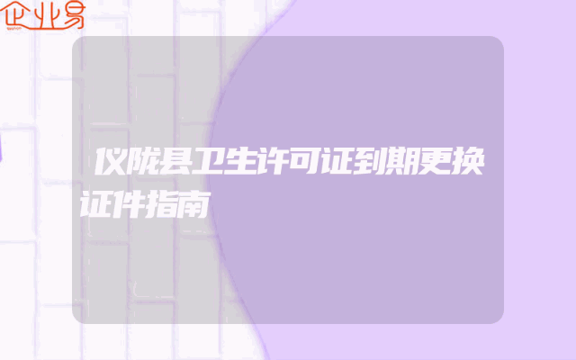 - 仪陇县卫生许可证到期更换证件指南一、了解卫生许可证到期更换流程仪陇县的卫生许可证持有人需明确了解许可证的有效期限,并在到期前按照规定流程进行更换。首先,应通过仪陇县卫生监督部门的官方网站或公告,了解许可证更换的具体要求和流程。二、准备更换证