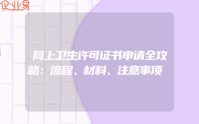 - 网上卫生许可证书申请全攻略:流程、材料、注意事项