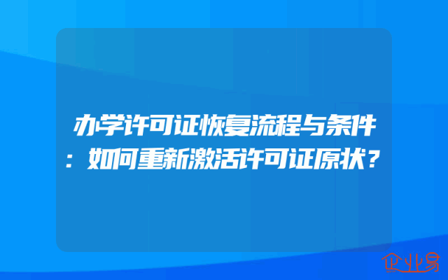 - 办学许可证恢复流程与条件:如何重新激活许可证原状?
