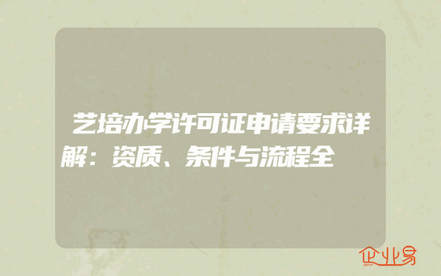 - 艺培办学许可证申请要求详解:资质、条件与流程全