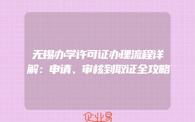 - 无锡办学许可证办理流程详解:申请、审核到取证全攻略