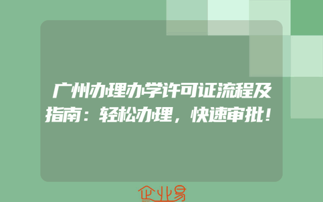 - 广州办理办学许可证流程及指南:轻松办理,快速审批!