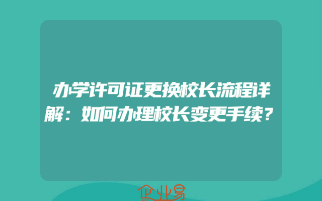 - 办学许可证更换校长流程详解:如何办理校长变更手续?