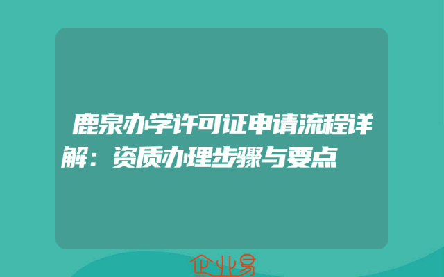 - 鹿泉办学许可证申请流程详解:资质办理步骤与要点
