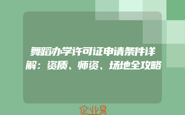 - 舞蹈办学许可证申请条件详解:资质、师资、场地全攻略