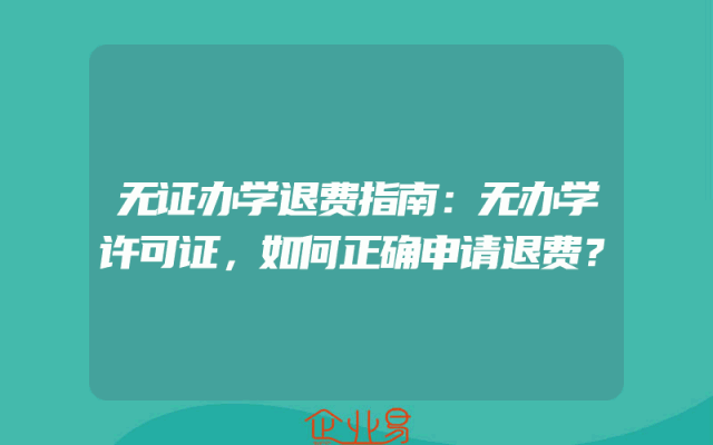 - 无证办学退费指南:无办学许可证,如何正确申请退费?