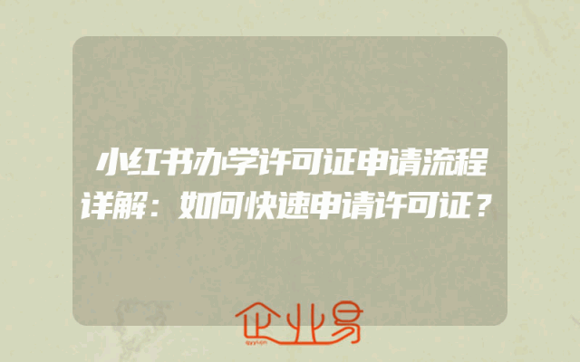 - 小红书办学许可证申请流程详解:如何快速申请许可证?