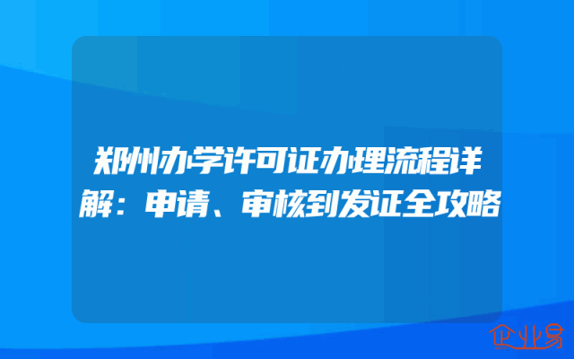 - 郑州办学许可证办理流程详解:申请、审核到发证全攻略