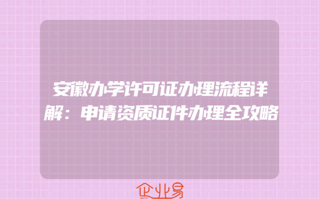 - 安徽办学许可证办理流程详解:申请资质证件办理全攻略