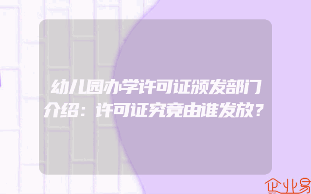 - 幼儿园办学许可证颁发部门介绍:许可证究竟由谁发放?