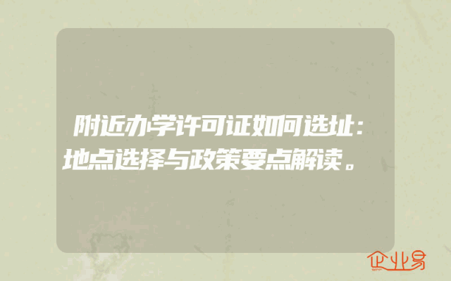- 附近办学许可证如何选址:地点选择与政策要点解读。