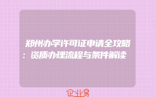 - 郑州办学许可证申请全攻略:资质办理流程与条件解读