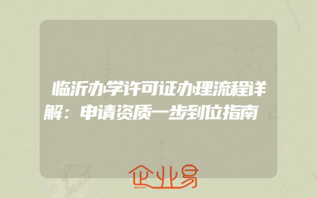 - 临沂办学许可证办理流程详解:申请资质一步到位指南