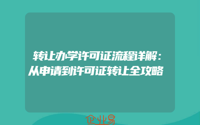 - 转让办学许可证流程详解:从申请到许可证转让全攻略