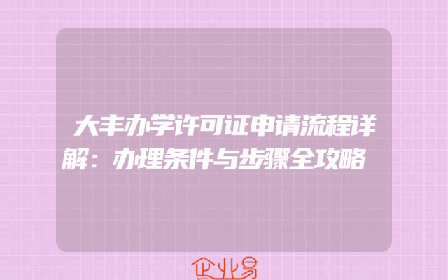 - 大丰办学许可证申请流程详解:办理条件与步骤全攻略