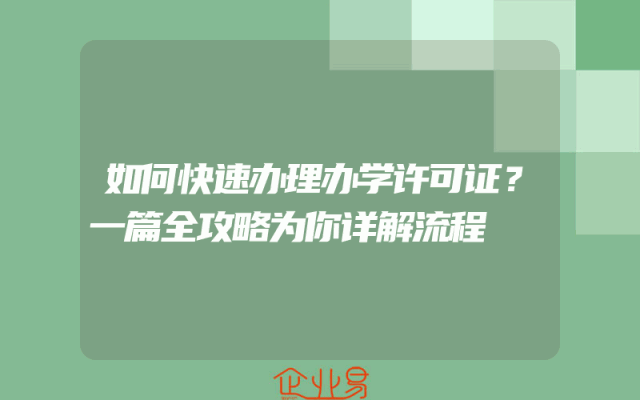 - 如何快速办理办学许可证?一篇全攻略为你详解流程
