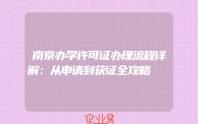 - 南京办学许可证办理流程详解:从申请到获证全攻略