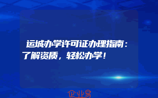 - 运城办学许可证办理指南:了解资质,轻松办学!