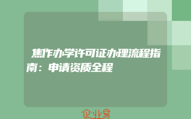 - 焦作办学许可证办理流程指南:申请资质全程