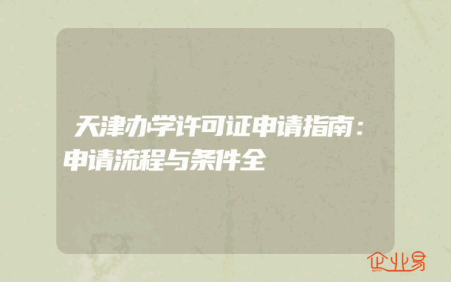 - 天津办学许可证申请指南:申请流程与条件全解析一、天津办学许可证申请的重要性随着教育行业的迅速发展,天津市对于教育培训机构的监管也日益严格。办学许可证作为教育机构合法运营的凭证,其申请流程与条件备受关注。申请者需充分了解并遵循相关规定,以确保
