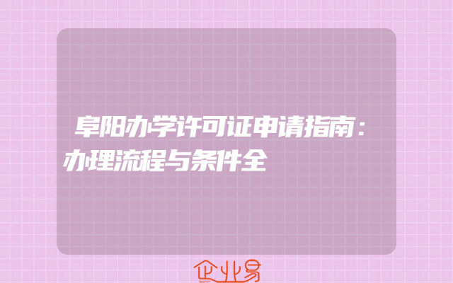 - 阜阳办学许可证申请指南:办理流程与条件全