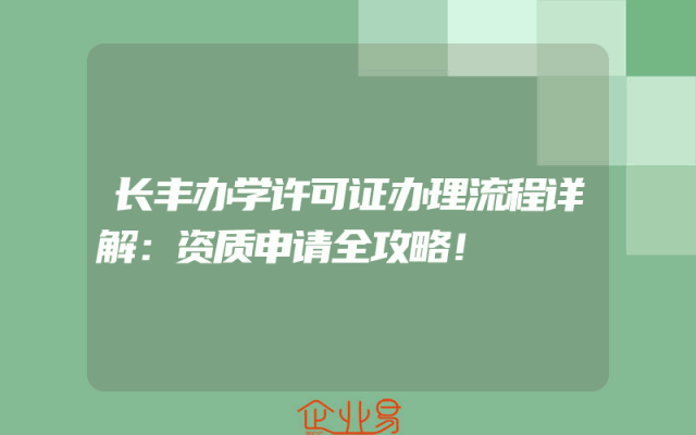 - 长丰办学许可证办理流程详解:资质申请全攻略!