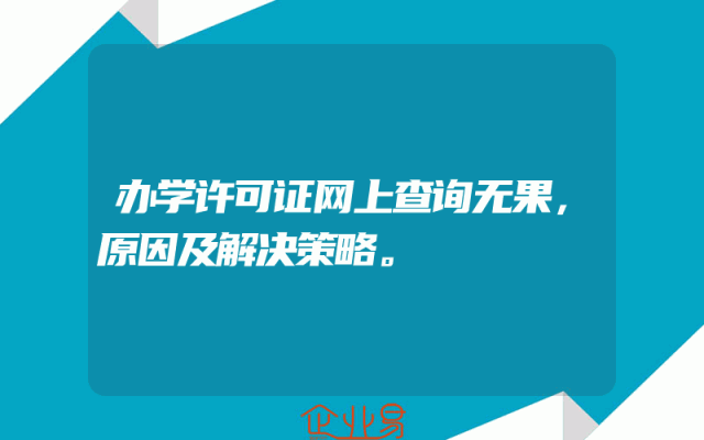 - 办学许可证网上查询无果:原因解析及解决策略一、现象描述随着互联网的普及,越来越多的信息被整合到线上平台,便于公众查询和获取。然而,在查询办学许可证时,有时我们会发现网上查询无果的现象。这一现象使得需要了解或验证办学许可证信息的公众感到困惑和