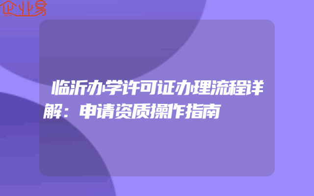 - 临沂办学许可证办理流程详解:申请资质操作指南