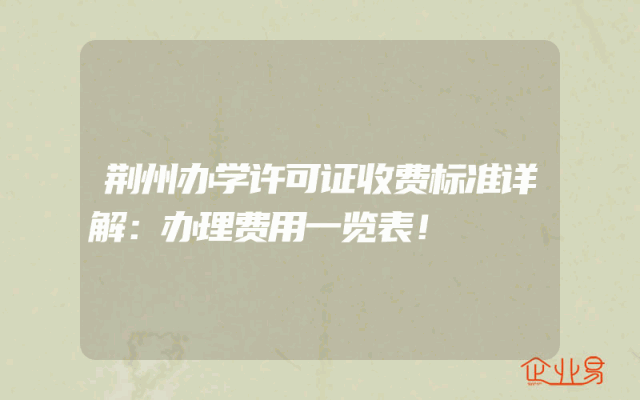 - 荆州办学许可证收费标准详解:办理费用一览表!