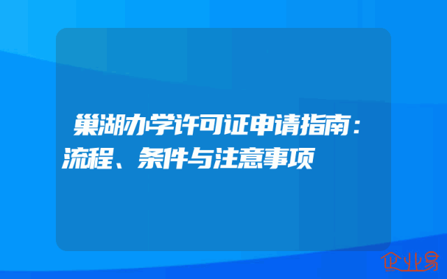 - 巢湖办学许可证申请指南:流程、条件与注意事项
