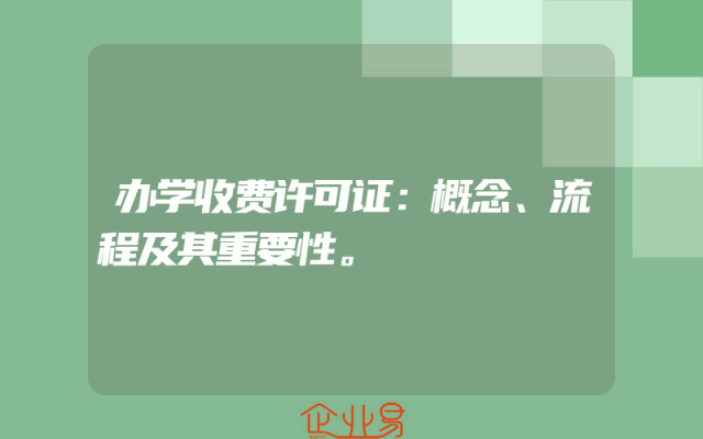 - 办学收费许可证:概念、流程及其重要性。