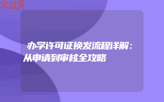 - 办学许可证换发流程详解:从申请到审核全攻略了解换发背景及必要性随着教育行业的不断发展,办学许可证的管理越来越严格。办学许可证是教育机构合法运营的凭证,定期换发许可证是保障教育质量和管理规范化的重要环节。因此,对于教育机构而言,了解办