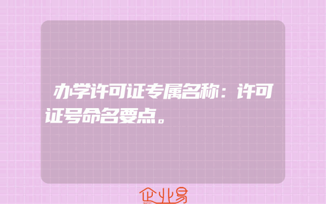 - 办学许可证专属名称:许可证号命名要点。