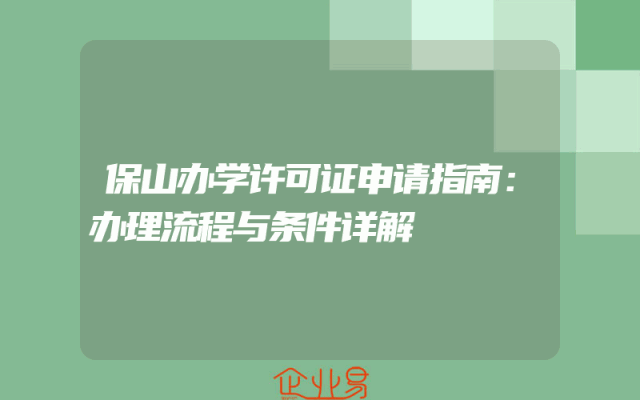 - 保山办学许可证申请指南:办理流程与条件详解